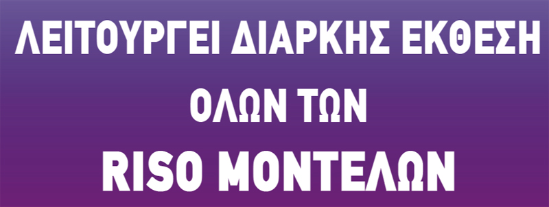 Ως επίσημοι αντιπρόσωποι της RISO KAGAKU CORPORATION JAPAN, για την ΕΛΛΑΔΑ & ΚΥΠΡΟ, παρέχουμε λύσεις παραγωγής, οικονομική & οικολογική εκτύπωση από ένα ευρύ φάσμα μονόχρωμων,